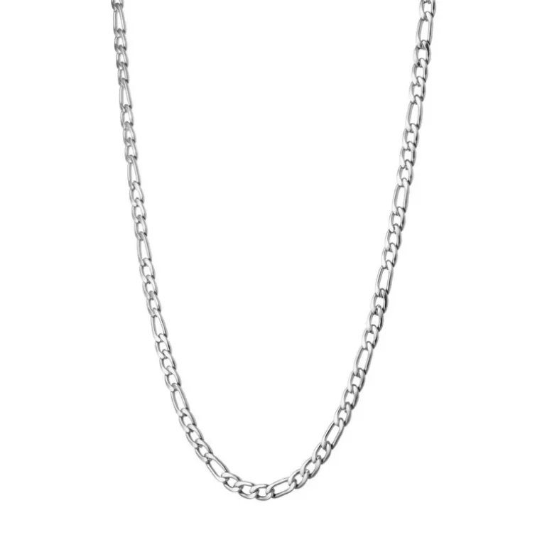 Figaro, kedja i rostfritt stål bredd 6 mm. Tre korta länkar varvat med en längre. Längd 60 cm, men låset går att kopplas i länken om man önskar den kortare.