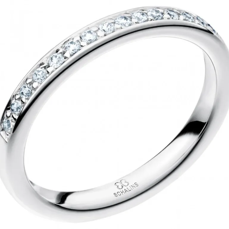 Klassisk alliansring med flera små diamanter på rad på rundad skena. Passar bra att kombinera med slät ring artikelnummer 240 i olika bredder eftersom de har samma skenprofil och höjd. Även modellerna som ingår i 237-serien passar bra tillsammans med denna.