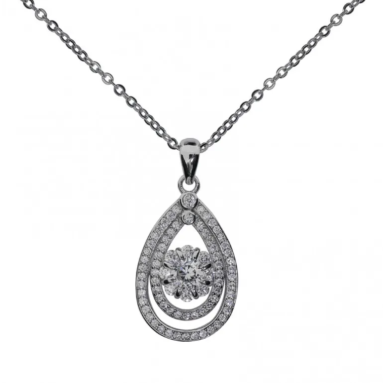 Glittrigt halsband med droppformat smycke med blomma i mitten, kedja ingår.