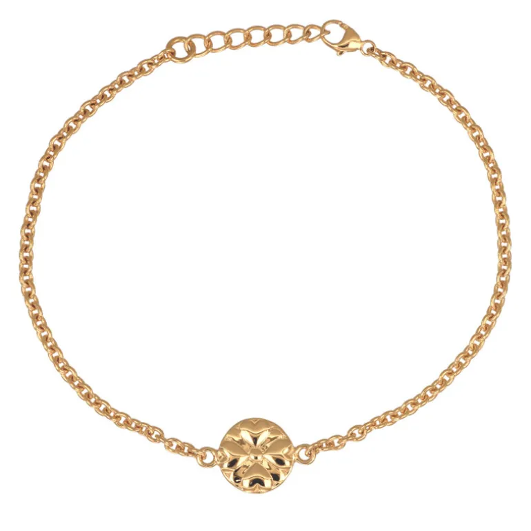 Armband Folklore med vacker blomma av fyra hjärtan som bildar en fyrklöver, material äkta guld 18 karat. Justerbart i längd 17-19 cm.