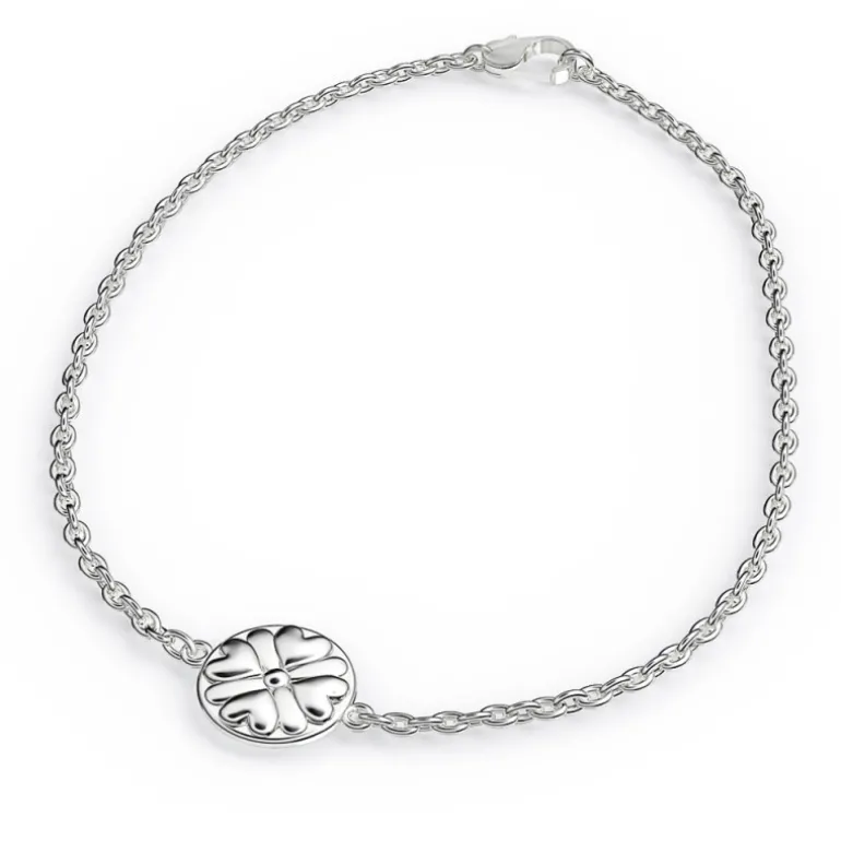 Folklore, armband i äkta silver med runt smycke dekorerad med fyra hjärtan som bildar en blomma.