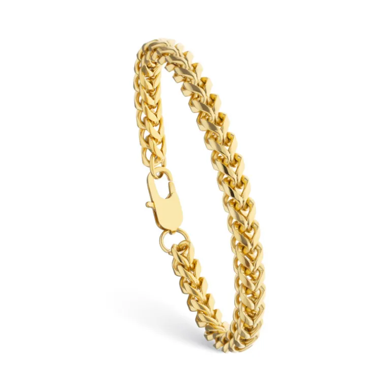 Frank, guldpläterat stålarmband kedja modell franco, en fyrkantig dubbelpansar. Längd 20 cm. Bredd 6 mm. Tänk på att ta av guldpläterade och guldförgyllda smycken när ni duschar, badar och sportar så håller de sig fina längre.