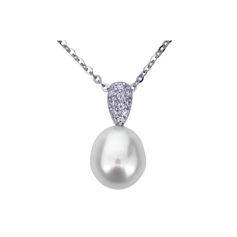 Halsband i äkta silver 925 med odlad sötvattenspärla och glittriga stenar.