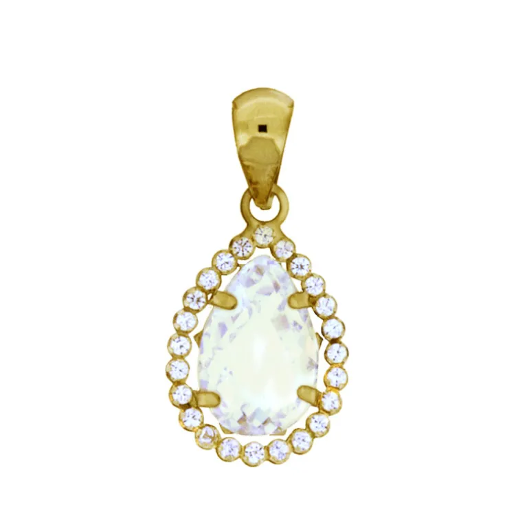 Droppformat smycke i äkta guld 18 karat och glittrande stenar, syntetiska cubik zirkoner.