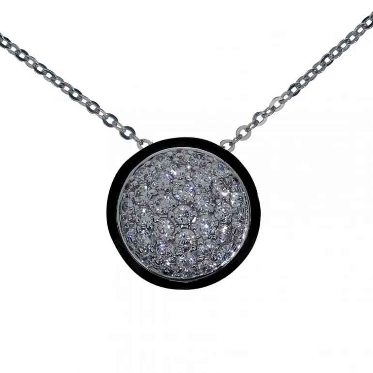 Halsband med runt globformat smycke fullt med vita gnistrande stenar, cubik zirkoner. Äkta silver 925.