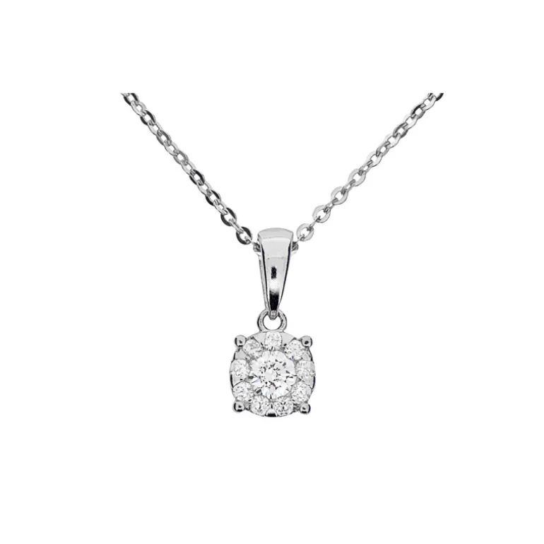 Vackert smycke i äkta silver med vita gnistrande stenar, kedja ingår.