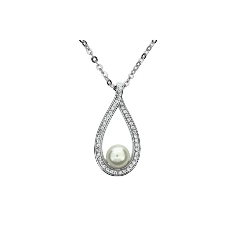 Halsband med vit sötvattenspärla och vita cubik zirkoner, äkta silver 925. Kedja ingår.
