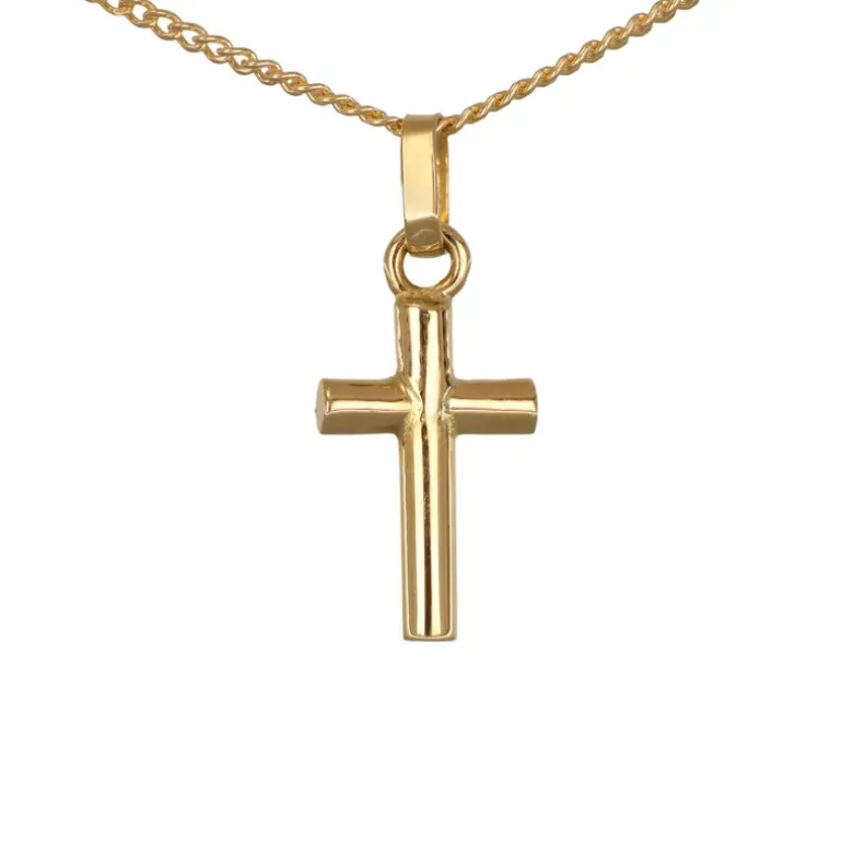 Guldhalsband med kors, litet guldkors, smycke kors och guldkedja pansar. Material äkta guld 18 karat. Höjd på korset inklusive ögla 14,5 mm. Bredd 6,2 mm.