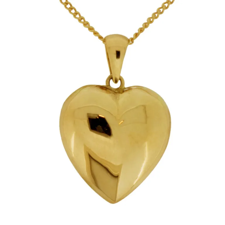 Halsband med stort guldhjärta, klassiskt smycke med slätt bulligt hjärta som berlock i äkta guld 18 karat.