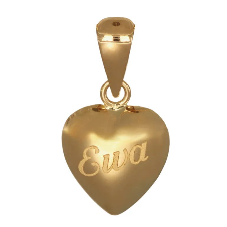 Guldhjärta med valfri gravyr, slät klassisk berlock med hjärta i äkta guld 18 karat. Bredd 8,1 mm. Höjd inklusive ögla 15,2 mm. Skriv önskad gravyr vid beställningen.
