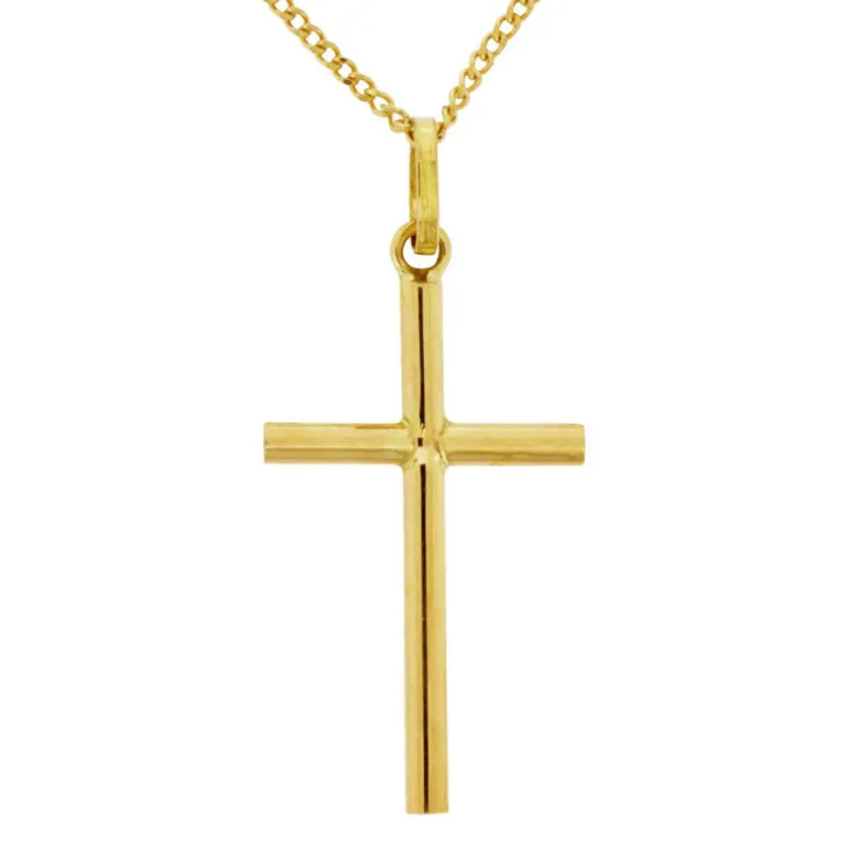 Slätt enkelt guldkors med guldkedja i äkta guld 18 karat.