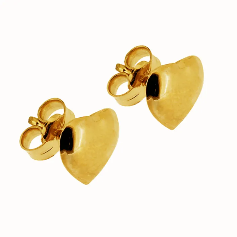 Fasta guldörhängen med släta hjärtan, material äkta guld 18 karat.