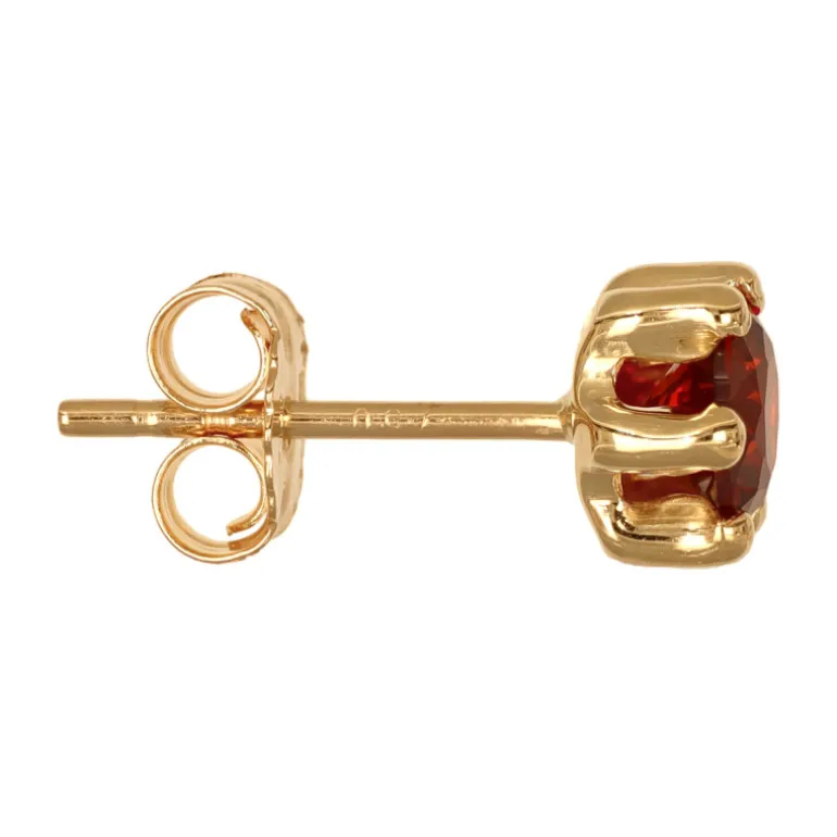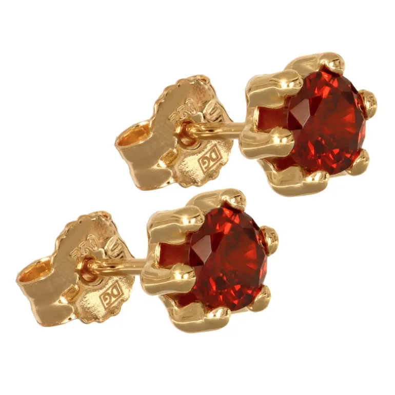 Guldörhängen äkta guld 18 karat, studs med röda granatfärgade cubik zirkoner infattade med sex klor. Storlek på stenarna 4 mm. Diameter inklusive fattning 5 mm.