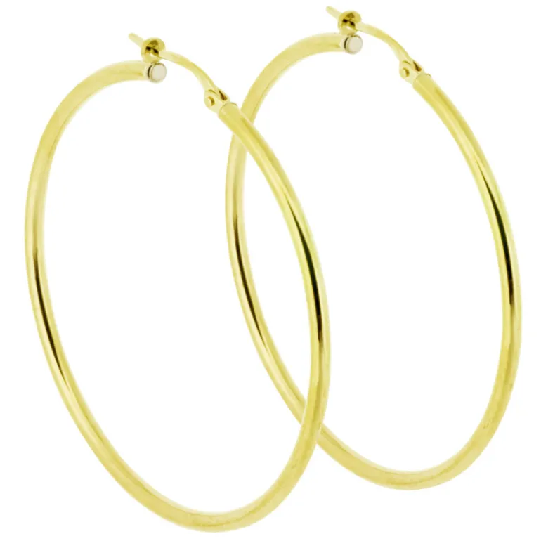 Stora ringar som örhängen i 18 karat guld. Ytterdiameter ca 44 mm.