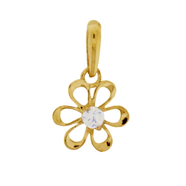Guldsmycke med blomma och glittrig sten i mitten, smycke i äkta guld 18 karat med guldblomma.