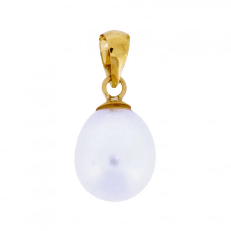 Guldsmycke, berlock och hängsmycke med vit odlad pärla, droppformad sötvattenspärla med fattning i äkta guld 18 karat.