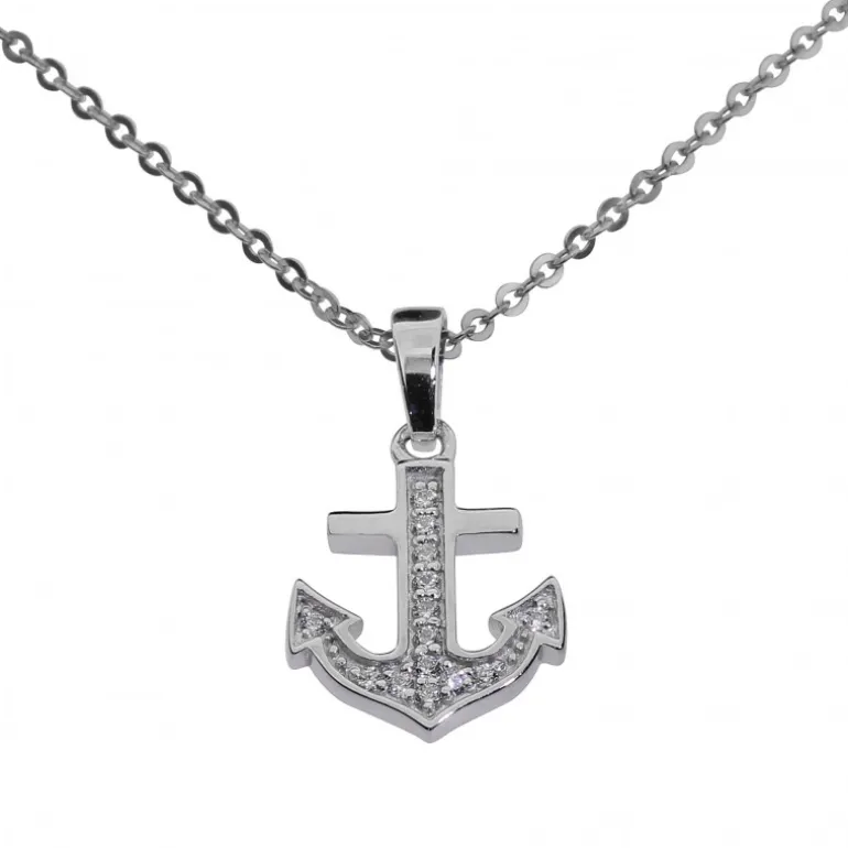 Halsband med ankare och glitterstenar i äkta silver 925, kedja ingår.