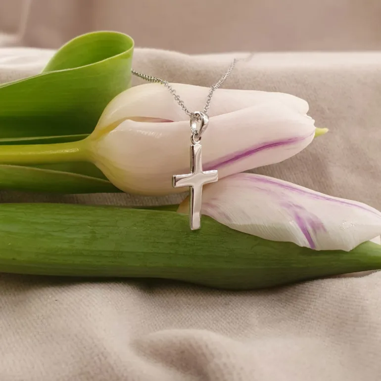 Halsband med slätt kors i äkta silver 925.