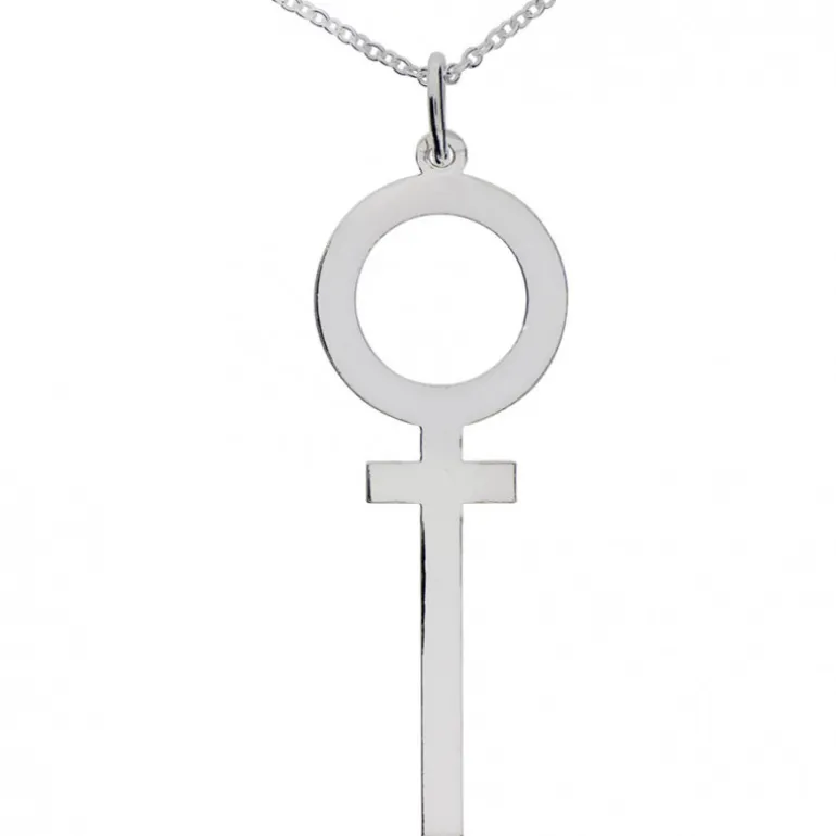 Halsband med kvinnosymbol och kvinnotecken, feministsymbol, i äkta silver 925.