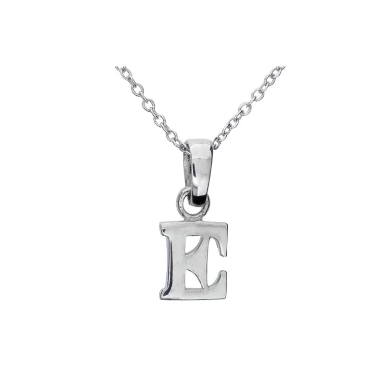 Halsband med berlock bokstav E, kedja ingår. Äkta silver 925.