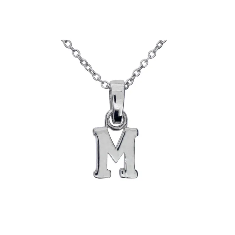 Halsband med berlock bokstav M, kedja ingår. Äkta silver 925.