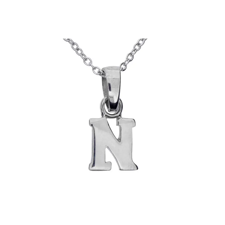 Halsband med berlock bokstav N, kedja ingår. Äkta silver 925.