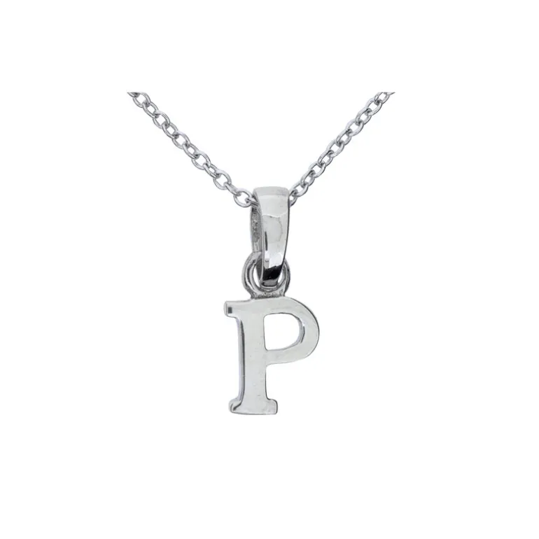 Halsband med berlock bokstav P, kedja ingår. Äkta silver 925.