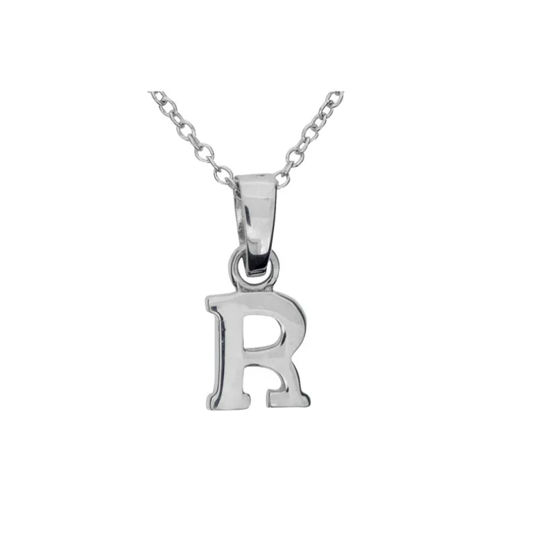Halsband med berlock bokstav R, kedja ingår. Äkta silver 925.