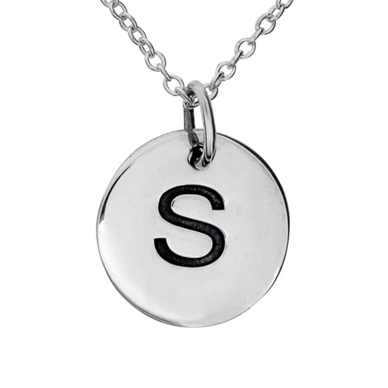 Halsband med rund berlock bokstaven S graverad, kedja ingår. Äkta silver 925.