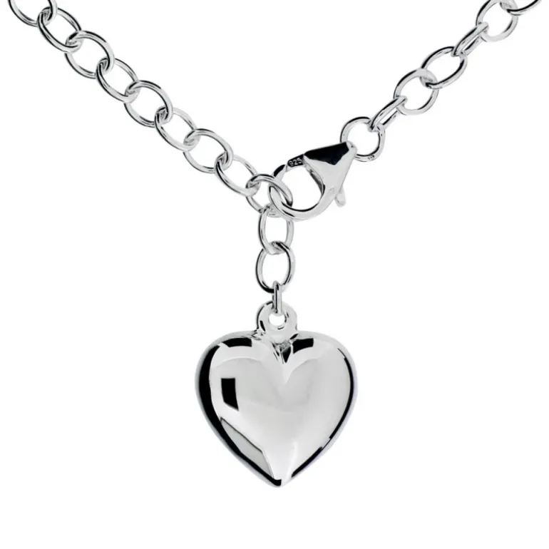 Halsband med hjärta och silverkedja med ovala runda länkar. Material äkta silver.