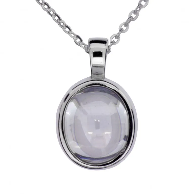 Halsband med oval vit sten infattad i äkta silver 925, kedja ingår.