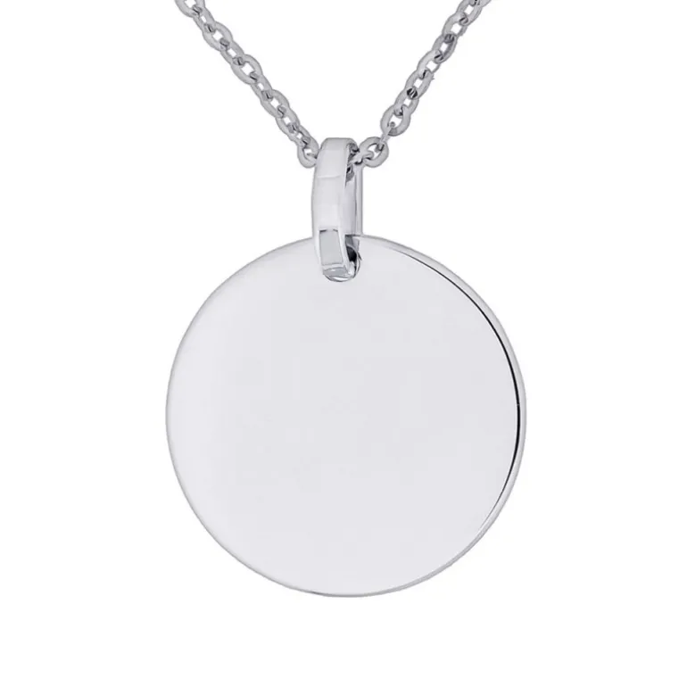 Halsband med rund platt berlock diameter 16 mm, kedja ingår. Material äkta silver.