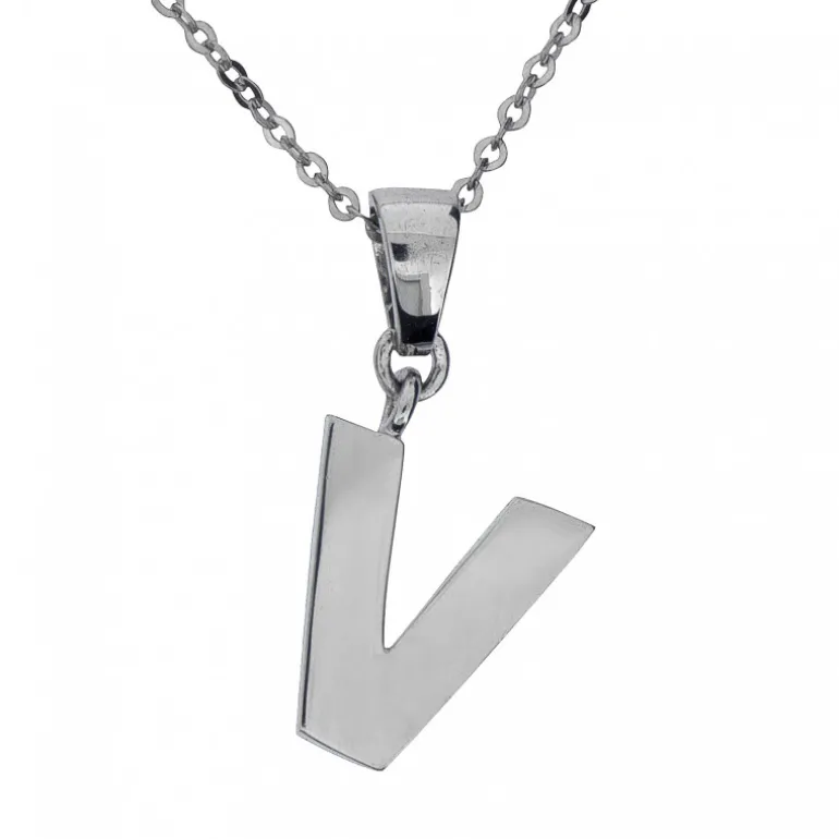 Halsband med stor bokstav V i äkta silver, kedja ingår.