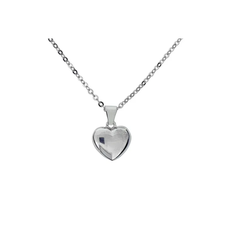 Halsband med slätt blankt hjärta i rhodinerat äkta silver 925.