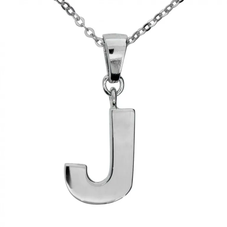 Halsband med berlock stor bokstav J i äkta silver 925, kedja ingår.