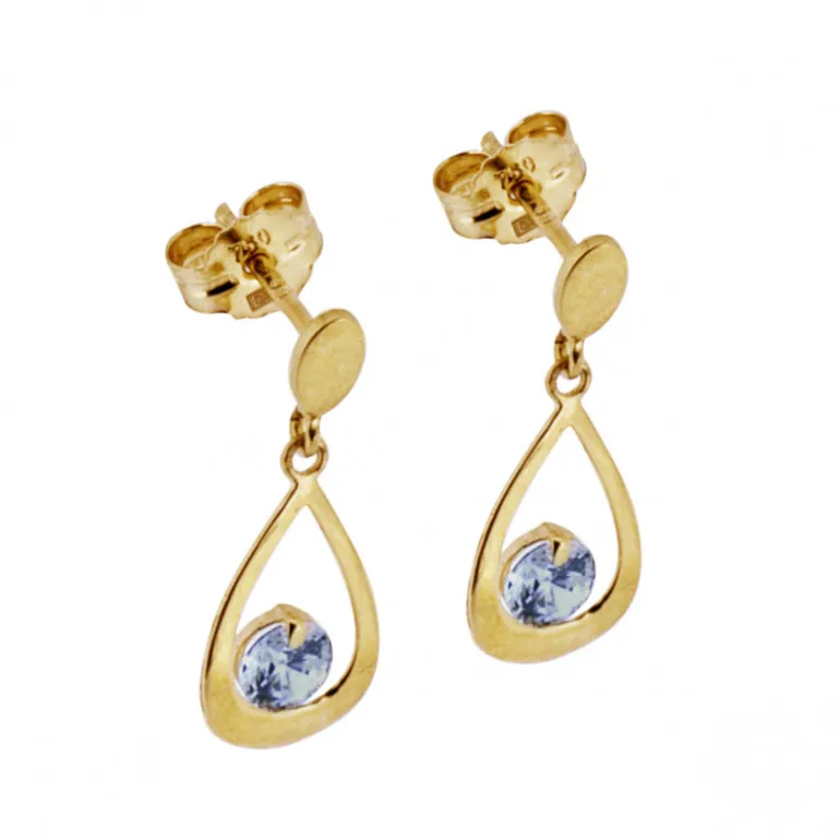 Hängande guldörhängen 18 karat guld och vita cubik zirkoner.