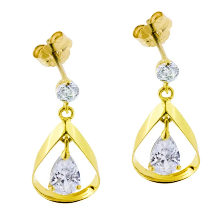 Hängande guldörhängen 18 karat med vita gnistrande cubik zikoner.