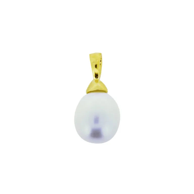 Vit odlad sötvattenspärla som smycke med ögla i rödguld 18 karat.