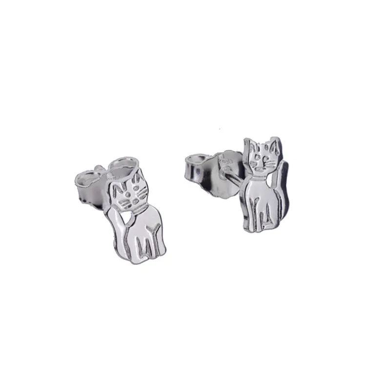 Silverörhängen med katter i äkta silver, längd 10mm.
