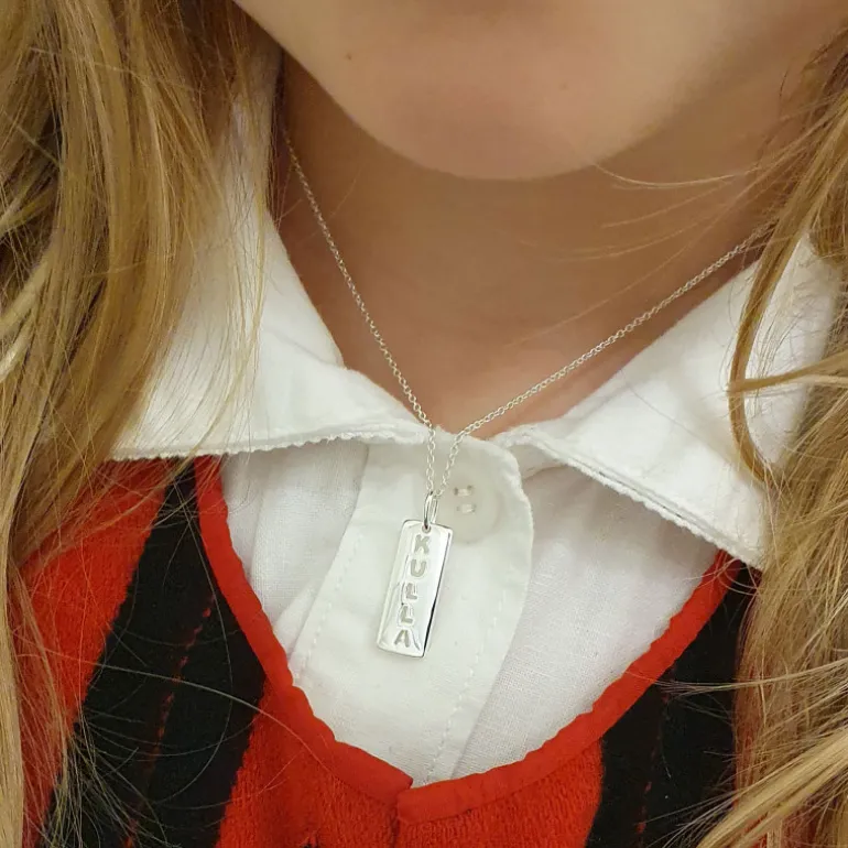 Smycke i äkta silver med namnet ” Kulla ” utsågat. Kedja köpes separat.