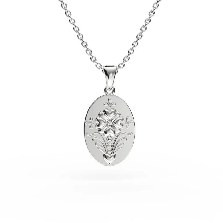 Halsband Kurbits, oval amulett med vacker blomma och kedja i äkta silver.