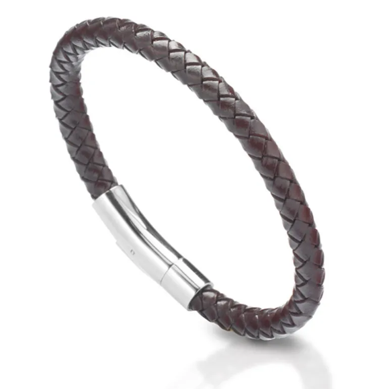 Läderarmband Loui, flätat brunt armband i läder med lås i stål.