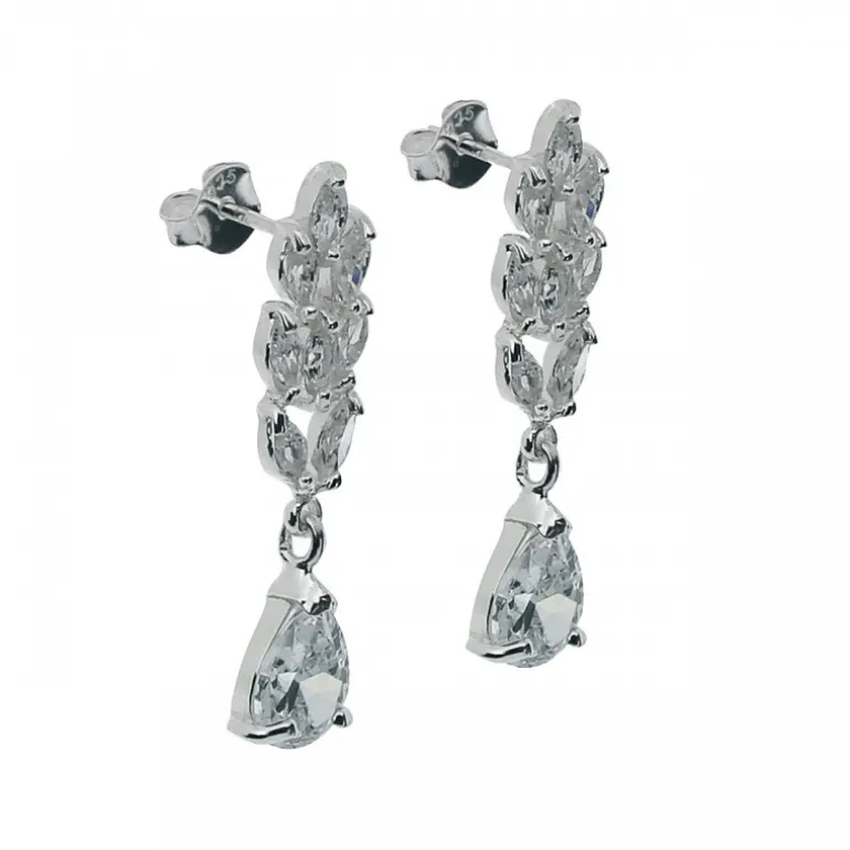 Hängande silverörhängen med flera glittriga stenar. Snygga festörhängen.