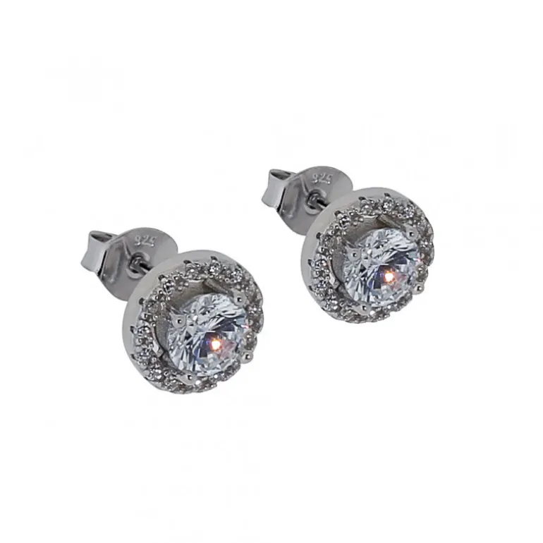 Örhängen i snygg rund klassisk modell med stor sten i mitten omgiven av flera mindre, äkta silver 925.