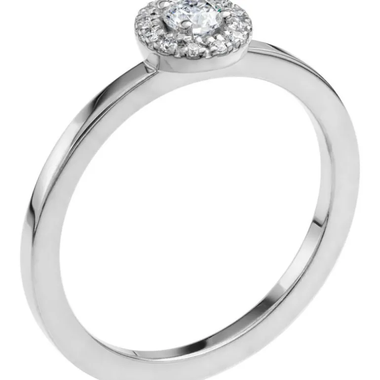 Söt liten smal haloring i vitguld med diamant i mitten och flera mindre diamanter runt om. Denna modell heter Love 03 och är tillverkad av Schalins ringar. Ringen är helt rak på ovansidan, sidorna och invändigt.