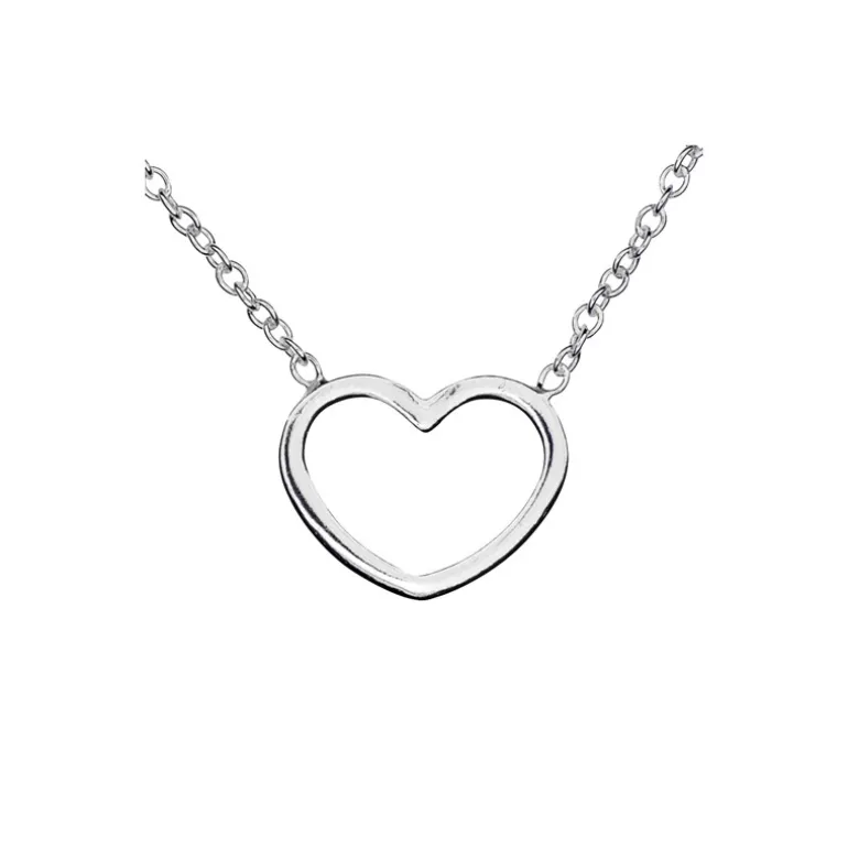 Halsband med silverhjärta i kontur äkta silver 925, kedja ingår.