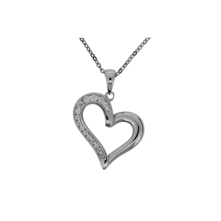 Halsband med hjärta på snedden och gnistrande vita cubik zirkoner på ena sidan.