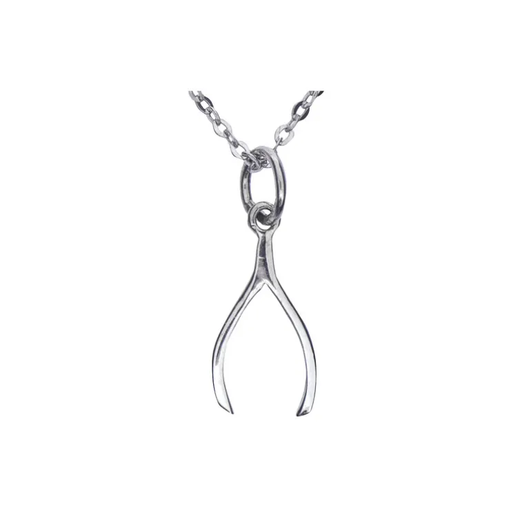 Halsband med wishbone, lyckoben, i äkta silver 925. Kedja ingår.