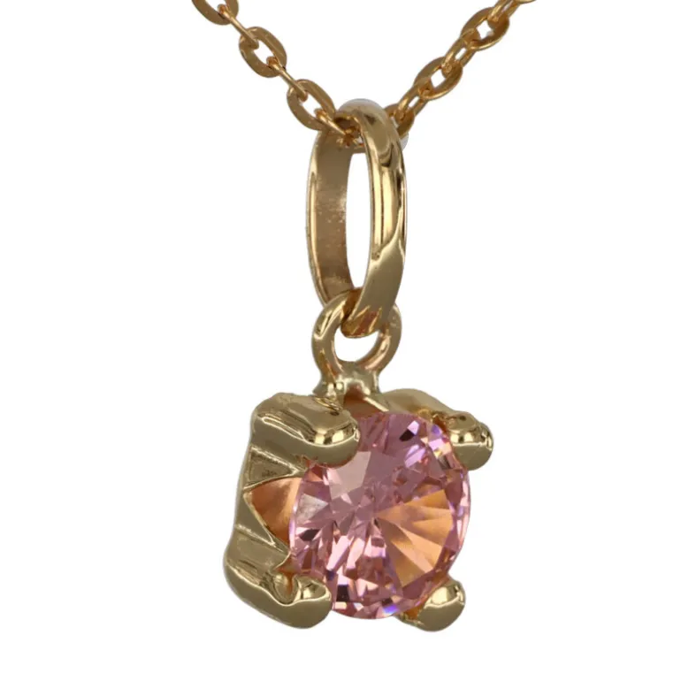 Halsband med månadssten smycke för månad oktober i äkta guld 9 karat. Storlek på stenen 5 mm i diameter, höjd på smycket inklusive ögla 11 mm. Färgad syntetisk rosa sten. Kedja modell ankar, bredd 0,6 mm artikel 9-50-0001. Material äkta guld 9 karat, det vill säga en blandning, legering, av 37,5% guld och resten silver och koppar.