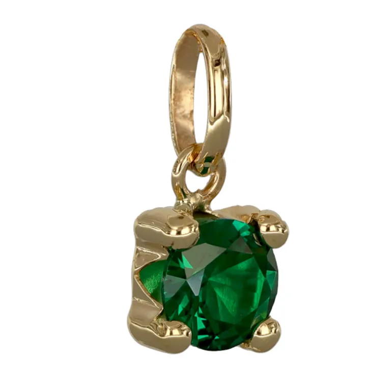 Månadssten smycke för månad april äkta guld 9 karat. Storlek på stenen 5 mm i diameter, höjd på smycket inklusive ögla 11 mm. Färgad syntetisk sten liknande en smaragd.